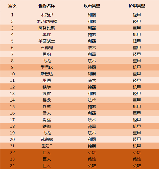 所以为了尽快提升科技我们需要对于各波的系统怪的攻击类型和护甲类型做了解