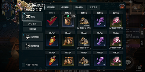 ⑨签到:活动面板中有需要福利,其中包括每个月都会有的签到活动。8日签到也会有强化石,同时还能获得永久时装一套。