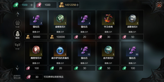 ⑧商城每日限购:商城每日会上架一批特价道具,有几率出现强化石。