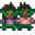 两个穿着衣服的绿色人偶,并排坐在一起。似乎是一对非常要好的朋友。