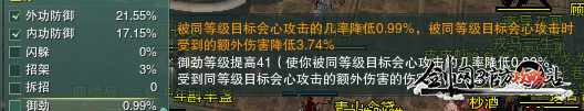 俗称“减甲”。也就是说,你在给对方挂上流血的同时,还会挂上这个减甲buff,外功攻击(也就是物理伤害)会对你的敌人造成更多的伤害。我们可以看到下图,这是1350的竞技场衣服,它的外功防御仅仅是110,别的位置防御更低。但是你的减甲却能减200!也就是说:【只要敌人身上挂着你的流血,就等于他就是少穿了两件装备在和你打】。