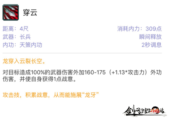 天策唯二的主要输出技能(另一个是战八方),重要的是挂流血。在第二重奇穴【穿】的支持下,它更是一个兼具挂流血、挂减速、攻击距离远等特点于一身的优秀技能。