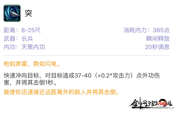 突:两本招式效果(释放突能解除锁足和减速),一本招式施展范围(+2尺,)