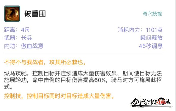 破重围不一定非得在破坚阵后使用(很多玩家追求破坚阵后使用破重围,因为破重围对倒地目标的伤害能增加百分之六十)。