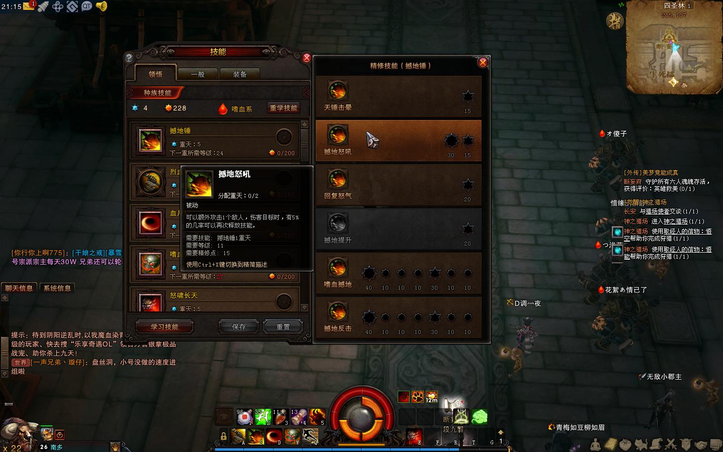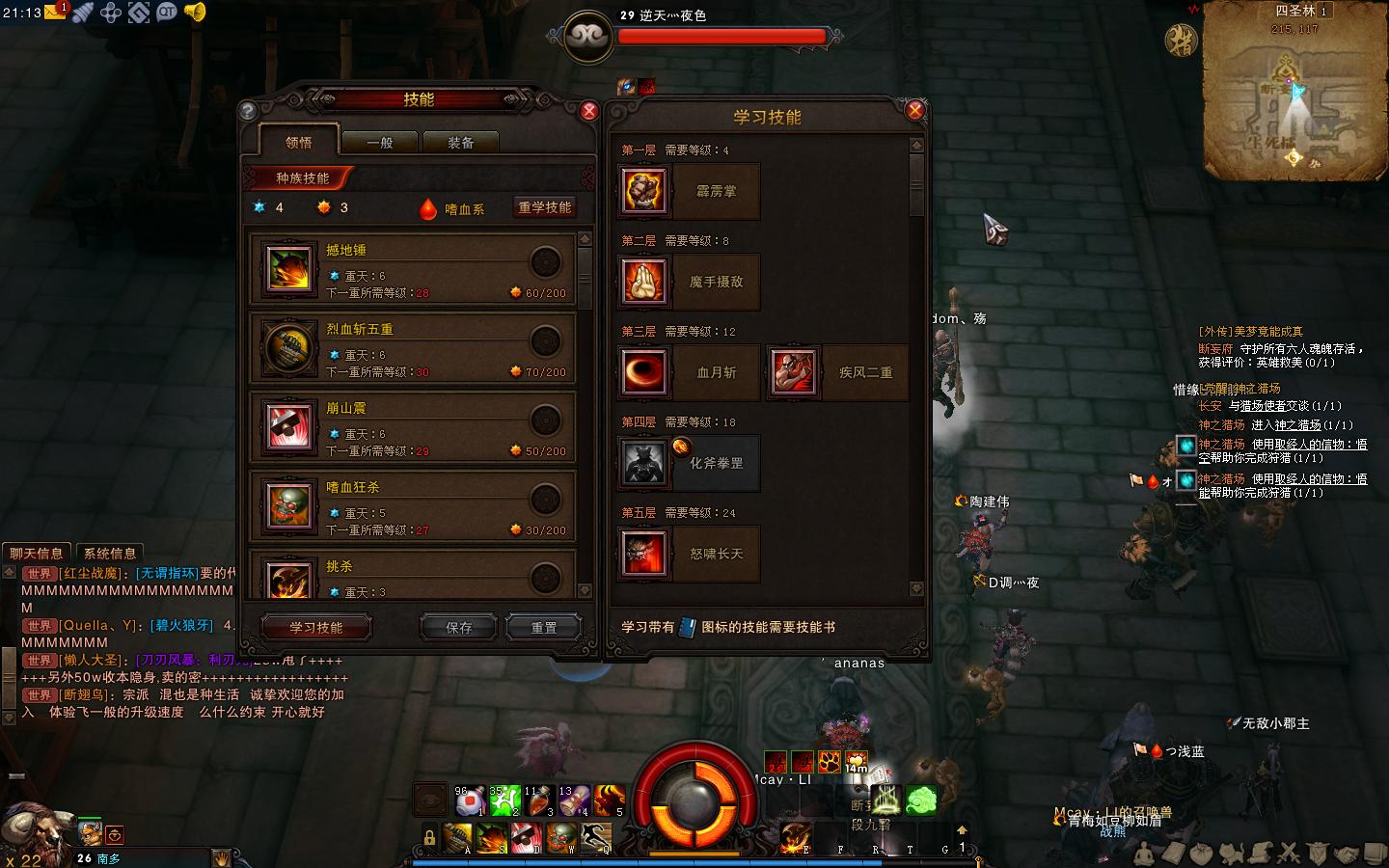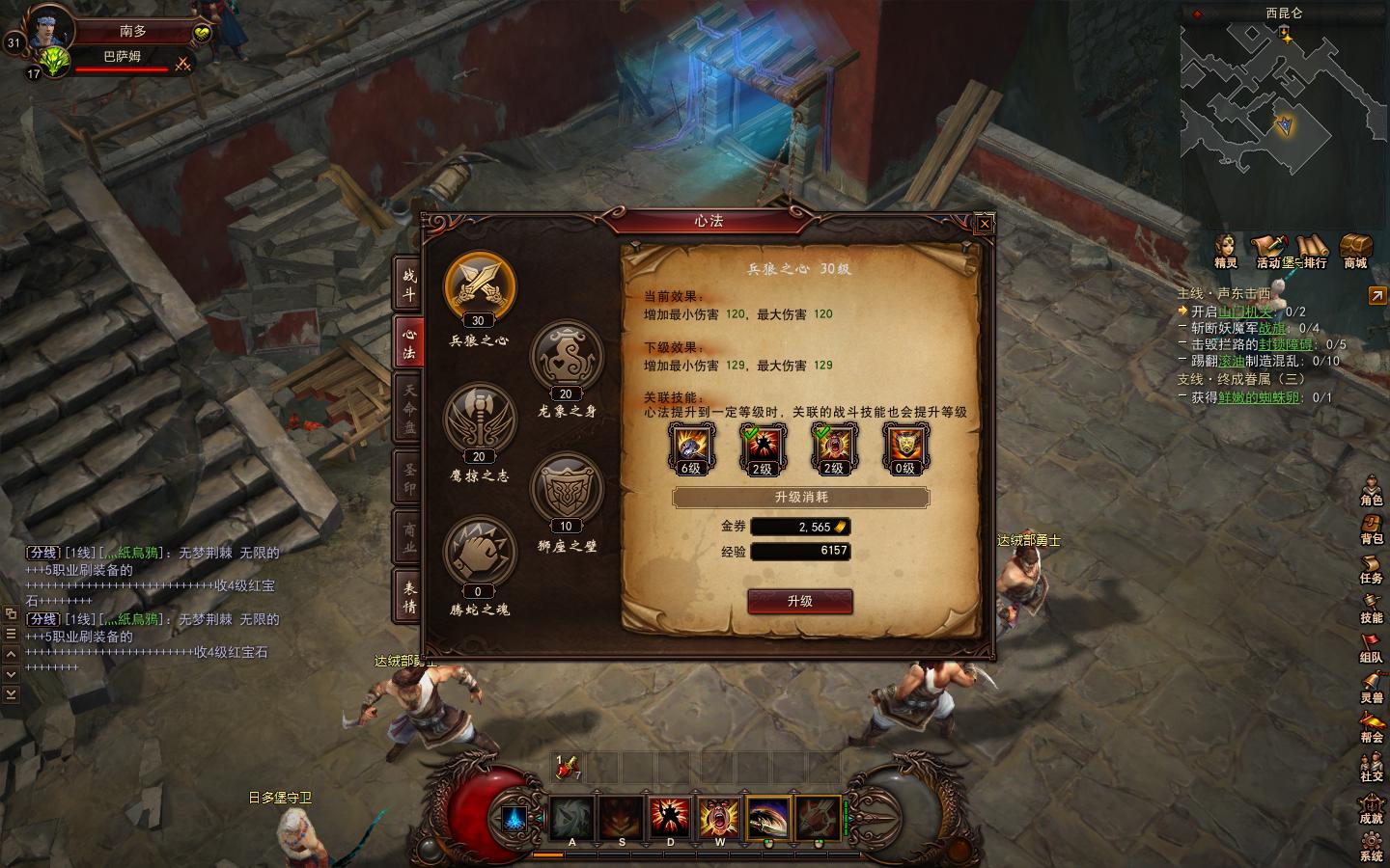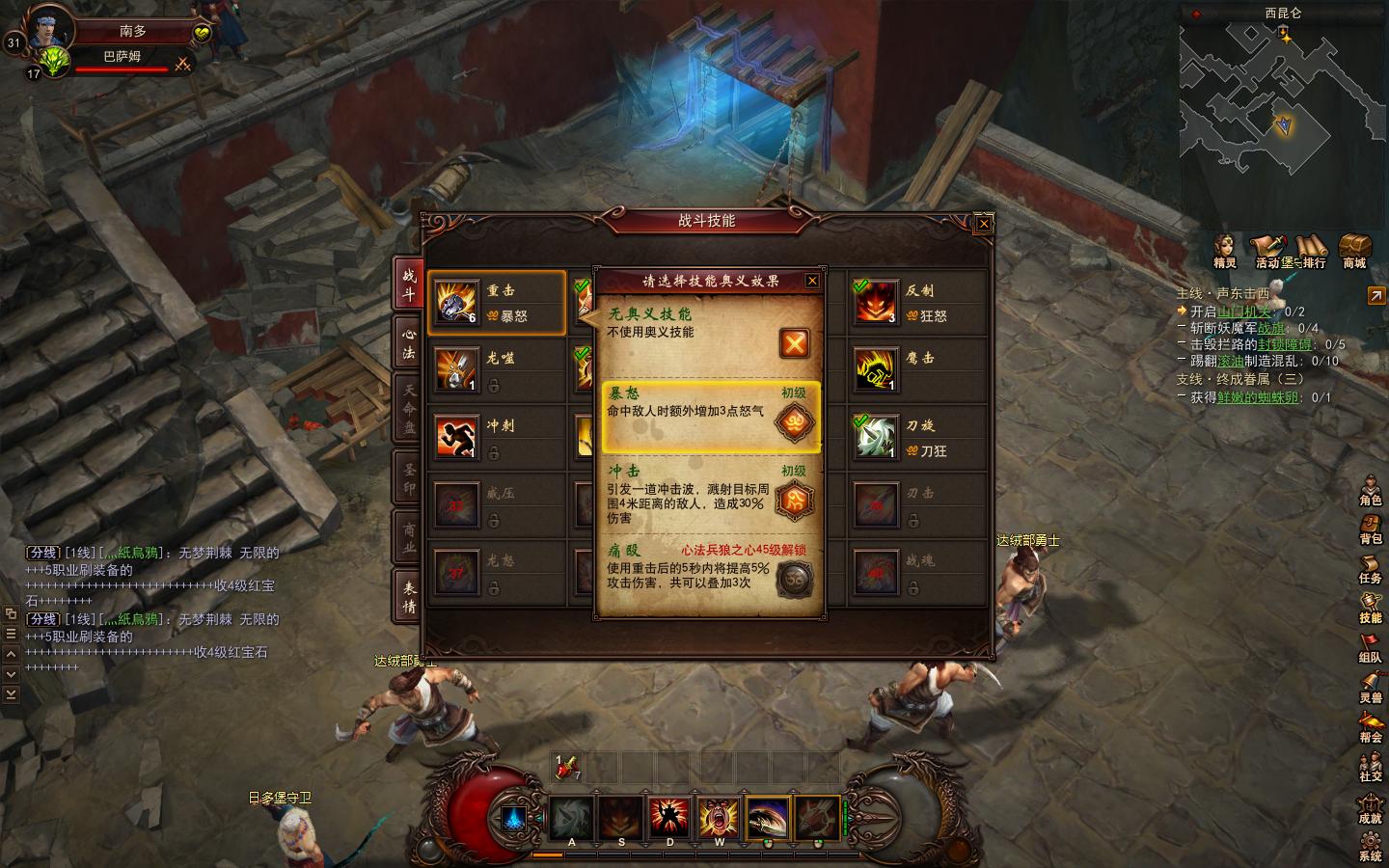 藏地传奇采用了与暗黑3相仿的技能池体系,玩家角色随着等级提升自动解锁技能,可以自由分配在1-4数字键以及鼠标左右键一共六个技能槽上。在玩家30级后可以开始修炼心法,每种心法都对应不同的技能,提升心法可以提升技能等级顺带解锁技能的奥义效果,奥义效果可以给技能附加特殊效果。点击查看更多