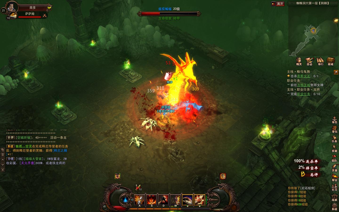 斗战神虽然是2.5D网游,但是比较意外的是游戏不支持传统的鼠标打怪,只能通过按键使用技能。游戏采用完全无锁定的战斗系统,按键释放技能鼠标选择方向,不少角色的连招需要通过连按按键来实现,颇有动作游戏的战斗快感。点击查看更多