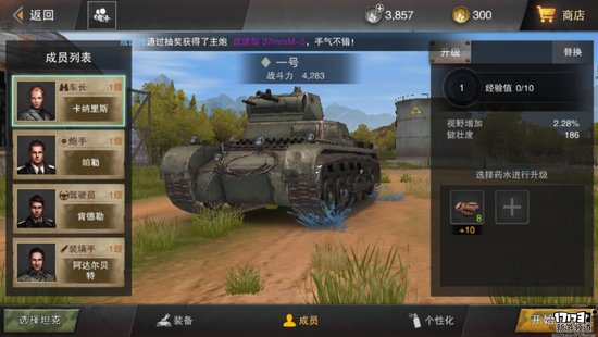 至于游戏中的坦克强化等玩法倒是与卡牌手游的养成方式有所类似,从各个部位零件的收集强化并且进阶的玩法模式上看,还是十足的手游套路,而科技研发则有些类似于天赋的属性加成也仅仅只需要耗费金币即可强化。至于坦克上的成员强化直接给他们灌上几瓶经验药水就能够强化至最高级。当然说到底游戏中的核心玩法还是在养成模式上装备的差异化,不过“十连抽”给紫色装备却并不能够让人产生太大的冲动。