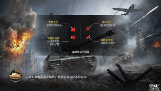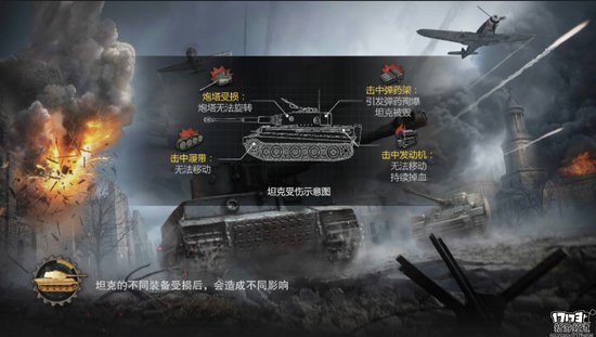在游戏中的坦克设计有多种部位的损坏,如炮塔受损将导致炮塔不能旋转、履带损坏会使你无法移动、发动机则是同样是无法移动以及持续掉血、弹药架被击中则会直接将你的坦克炸毁,这里我们能够看出,坦克的大部分弱点都处于侧翼以及后方,所以若能够顺利绕至敌军后方将给予敌人毁灭性的打击。