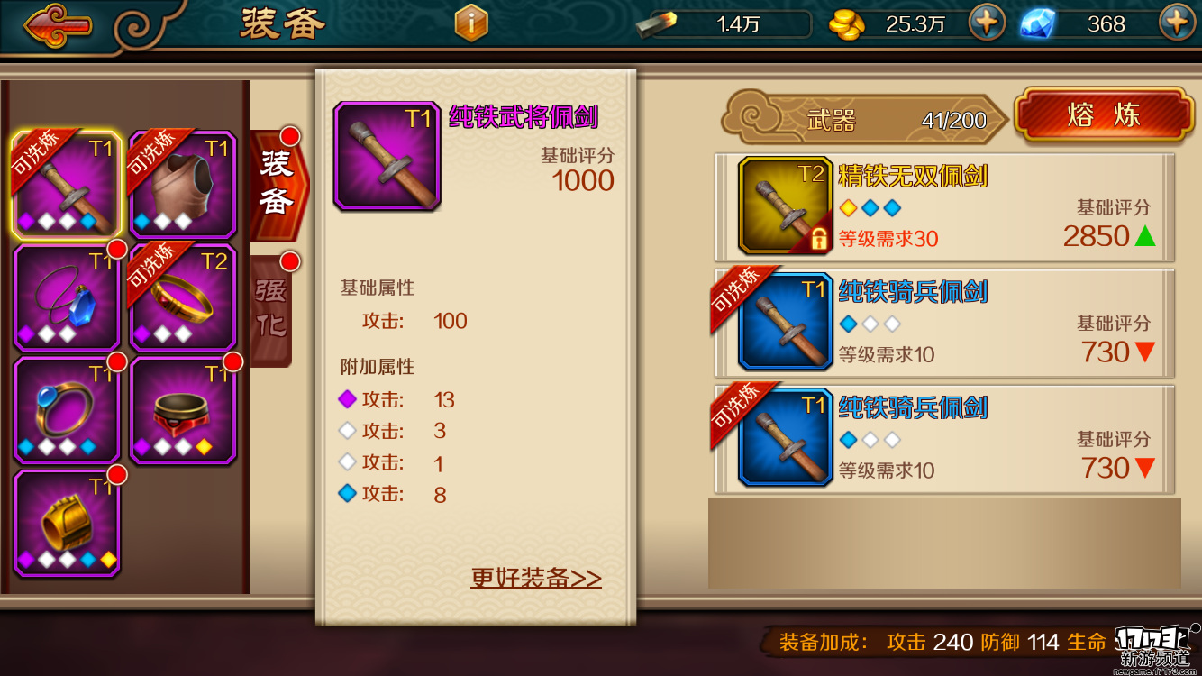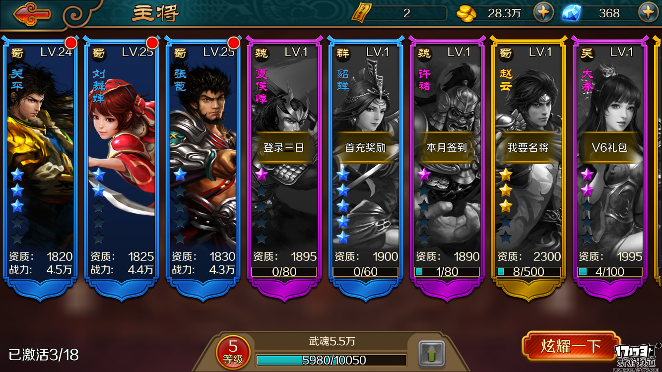 至于游戏中武将的养成,最大的氪金点还是在于升星的设定,虽说多个精英副本均可刷取到碎片,但是相比起土豪玩家的一刷一大把自然是毫无可比性。至于角色装备强化、进阶等等的设计倒是相当的传统,并且玩家只需要升级一套装备即可全武将通用,倒是省去了许多培养上的麻烦。