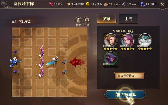 游戏中的养成单位主要分为英雄以及士兵两种,英雄单位就如同卡牌游戏一般有着升级、升星、装备等等的设定,其养成方式自然不必多说,只需要跟随引导进行强化即可。而小兵的养成则更加的简单,随着等级提升而解锁的部队只需要一键“全部升级”即可。