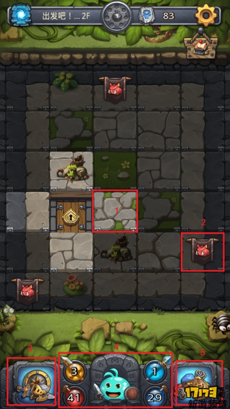 2号框这种下方是怪物,因为一开始这只冈布奥的称号能力能够显示几只石板后的怪物。 除了1号这种亮的石板能够翻开,其他暗色的石板需要打通连接后才能翻开。