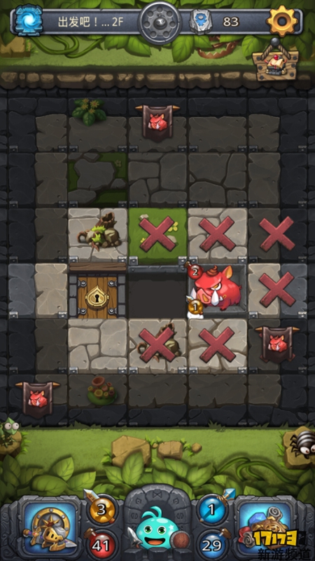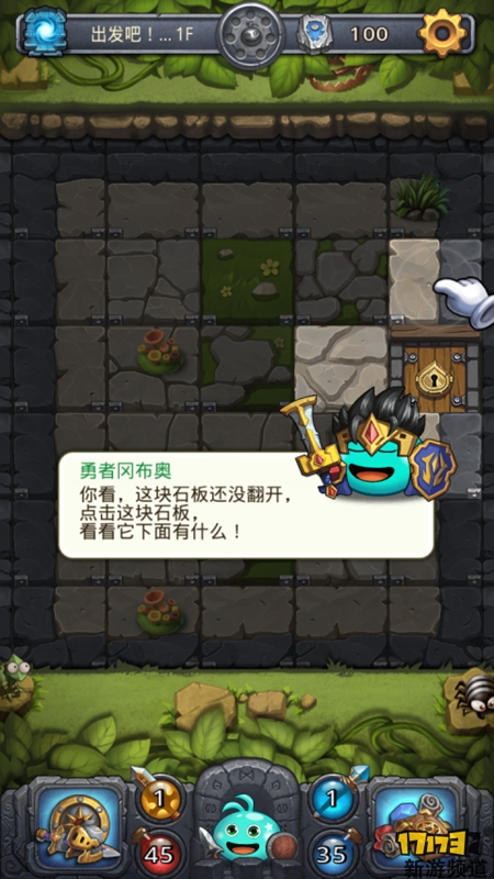 当你在石板下翻出怪物的时候,由于怪物的警戒,怪物周围8块石板是无法再翻开,必须击败怪物后才可以继续翻开石板。同样的怪物左上血瓶就是他们的生命值,左下剑图标就是他们的攻击力。