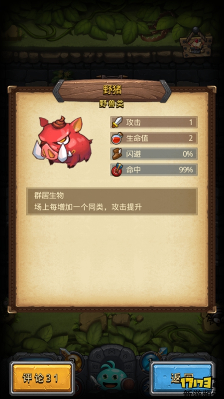 例如野猪的特性是群居动物,场上没增加一个同类,攻击提升,这便意味着我们如果翻出更多野猪,野猪的攻击就会增加,那么对付野猪的最好办法就是及时地干掉他。