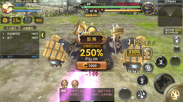 如图所示,世界BOSS挑战这个活动就是一群人去近乎是站桩输出一样对着boss就是干,而玩家们只需要对BOSS进行无脑的输出就可以了。