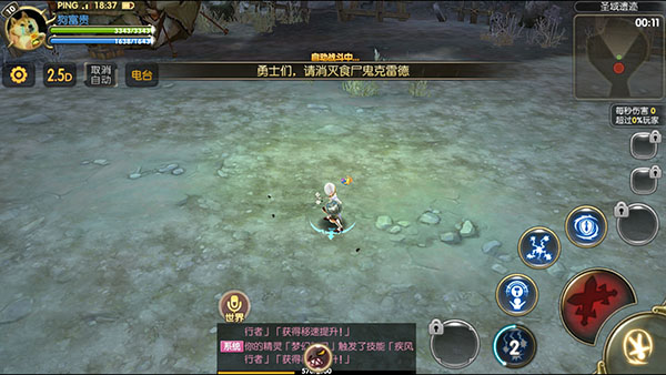 下面来看看进图后的攻击方式。这个也是沿用手游一贯作风,左边是摇杆键,摇杆键是属于非锁定的虚拟摇杆,也就是玩家只要在左边区域摇动,那么就会跟随玩家摇动的方向走。点击右侧区域的攻击图标或者是技能图标就可以任意的释放普攻或者技能了。