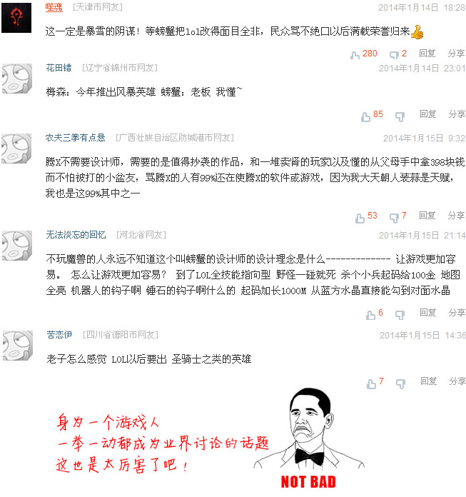 本周最有话题的人物,鬼蟹(Greg Street),因为他牵扯到了最有话题的两个游戏和一家公司,WOW、LOL和腾讯。为什么他要离开WOW加入英雄联盟的开发呢(原文>>)?不要再猜了,这一定是暴雪的阴谋!