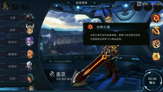 女神之魂气场环绕着周围,使得10米范围内的友方英雄普攻附带15%吸血效果。