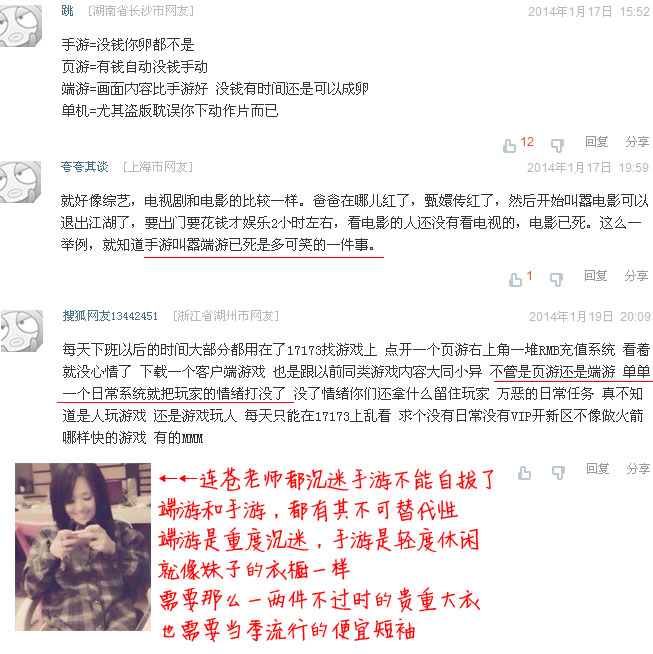 玩家形象比喻手游、页游、端游、单机的区别