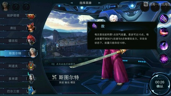 每次普攻能积攒一点剑气能量,最多可达10点。每点能量可增加2%攻速与8点物理攻击力,非攻击状态下,能量只能存在10秒。