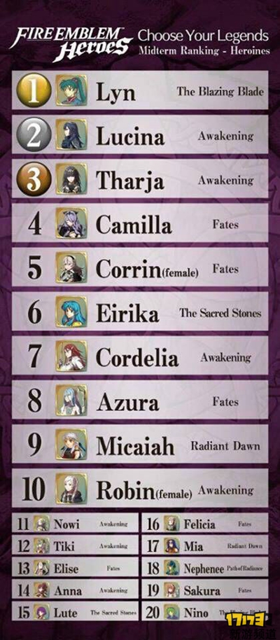 火焰纹章英雄角色人气投票 火焰纹章英雄什么角色好