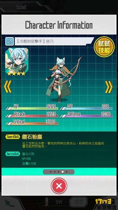 但是缺点是在太严重——除活动人物外全四星倒数第二的mp(仅高于ALO利兹),被动也没有mp加成,组队本回蓝效率太捉急,甚至不够连续放两个ss3。而组队本时常受制于网络因素,弹反后的第一击被队友抢走,导致不能成功控制,使得水桐引以为傲的特性远没有想象中的好用。实际刷图时也只能两个ss3后switch了