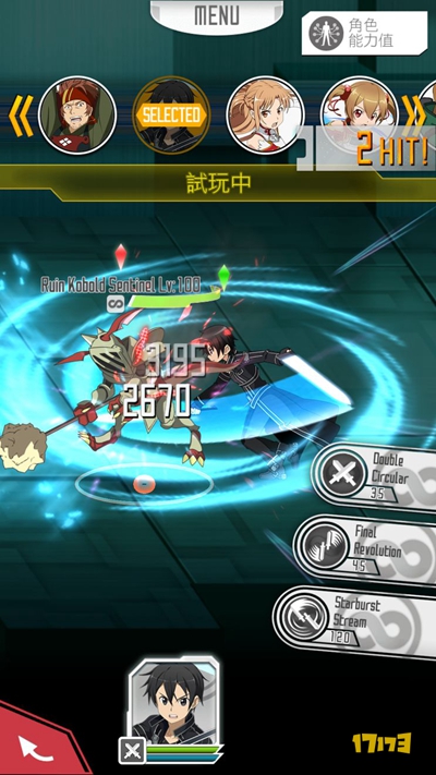 第二个技能水平四方斩(终极回旋击)这种可以防反,本人习惯吃下第一击立刻防反,这样桐人基本就没有威胁了。