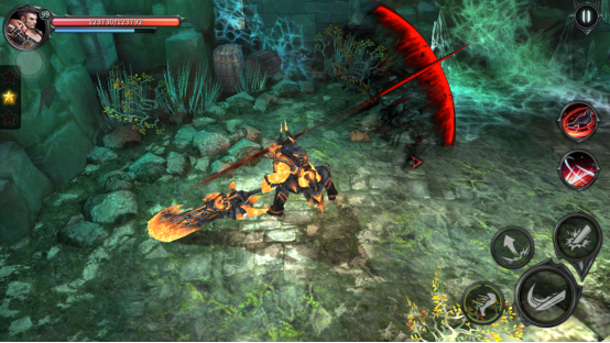 2.翻滚:有cd时间,三次连续翻滚之后需要等待缓冲,后期经过强化之后翻滚也带有不同的效果,比如刻印宝石,可以让英雄翻滚一次回升一定量的血。