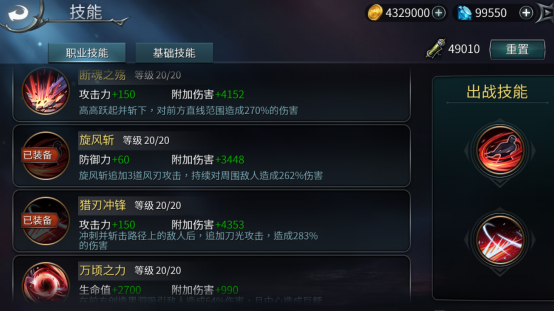 职业技能是对于每个不同职业设定的技能,与基础技能不同的是,职业技能所造成的伤害极高,玩家只能选择两个技能同时出战。