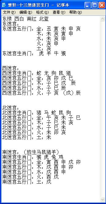 注意:还有一点需要注意,可能是BUG或者还有什么规律,就是可能你在西迷宫个时候,相对应它的规律有时候会变成别的迷宫的,这时你就要实验几次找出相对应迷宫的规律。我就是在西迷宫的时候刚开始进白门是正确的,中途突然变成东迷宫的规则,就是进绿色的门。基本上走迷宫的规律就是这样,下面我会把各个迷宫的规律发上来,大家自己领悟,可能有的地方会有一点错误请谅解。(至于怎么出迷宫我还不太清楚,只能在生肖迷宫里多转转,有次我想出迷宫出不来在里刷了半个小时才出来)