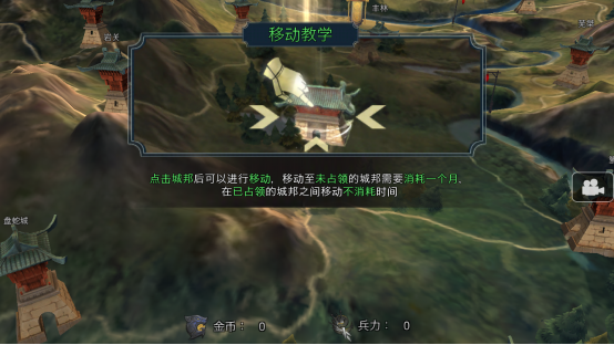 2.移动(旅行):点击城邦可以进行移动,移动至未占领的城邦需要消耗一个月,在已占领的城邦之间移动不消耗时间。