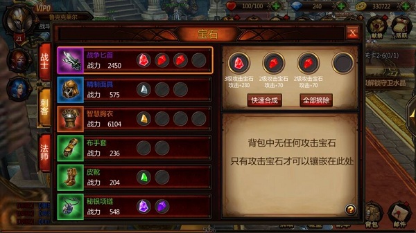 将你获得的宝石镶嵌在你的装备上来使你的装备变得更加强大,镶嵌和摘除是没有任何消耗的