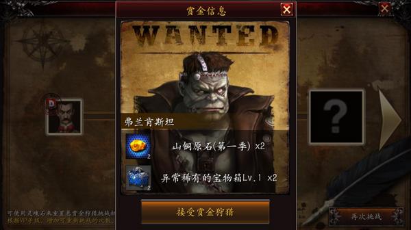 选择您要挑战的副本后,点击“接受赏金狩猎”按钮,即可找到对应npc。目前,每个难度都有4个关卡,关卡越往后,难度越大。当然难度越大,获得的奖励,肯定更加丰厚的。
