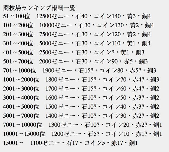 *附上竞技场排名和对应奖励