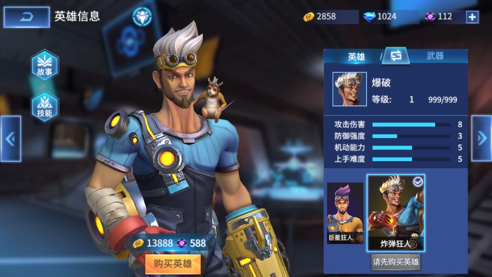 1、火箭发射器:远程普攻,远程武器。发射一个火箭攻击目标,可对小范围敌人造成伤害。冷却时间0.8秒