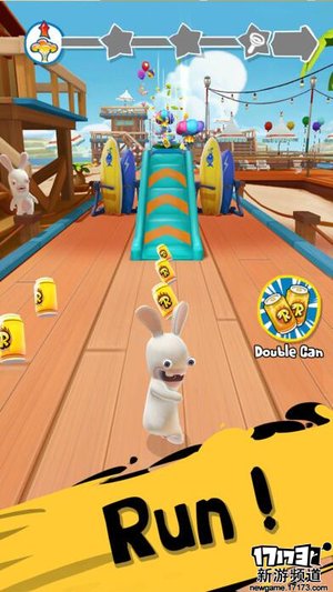 《疯狂兔子冲刺》是一款融合了《疯狂兔子》系列世界观的竞速跑酷游戏。玩家在游戏中需要操控疯兔在不同的环境之下四处奔跑,在游戏之中收集饮料罐和金币。