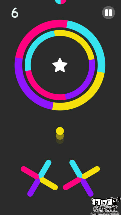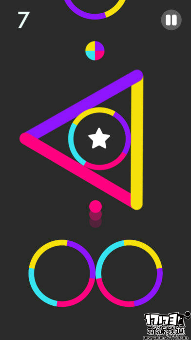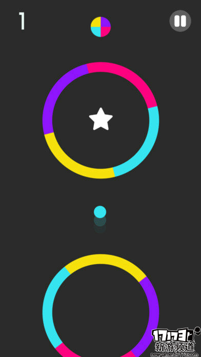 游戏玩法是轻按小球让它通过障碍物,它就会转换颜色并获得强化能力。注意要将小球按照每个障碍物的颜色样式来穿越它们。如果穿过了和球颜色不同颜色的障碍物就要重新开始。