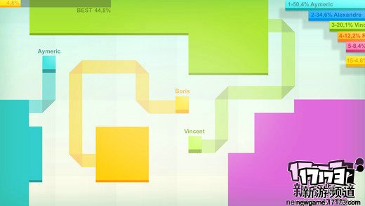 和大部分xx大作战一样,就是很多玩家共处一个屏幕中,通过各种方式弄死你的对手获得胜利。游戏主要考验反应力,一个不小心撞死或者被对手的防御弄死就gg了。