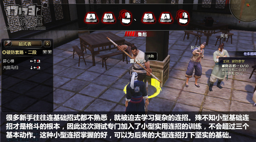 所以这次新流星也是领悟到了这个玩家需求,在教学部分把许多常见的小连招一步一步交给玩家,比如横扫的棍法,近身缠斗的棍法, 还有破防的招式,全部教给大家,并给与了充分的时间来练习。