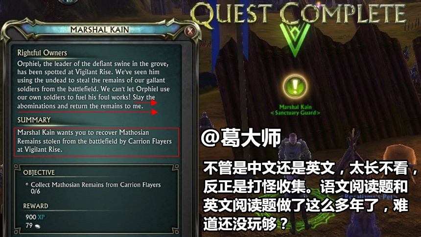 @葛大师 玩外服时候虽然看得懂,但英文太长懒得看,稍微扫一眼大概流程,就继续玩了。所以我会对剧情烂的MMO无所谓。