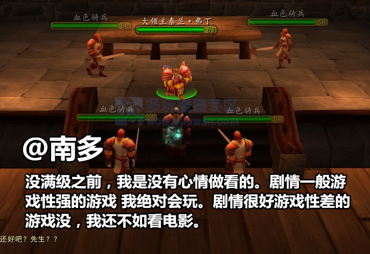 @南多 反正我玩wow的时候,前期也都没在意过剧情,不过到了满级以后,反而开始喜欢研究艾泽拉斯的各种游戏剧情文化,甚至为了体验剧情,回去做一些灰色的低等级任务。不过感觉wow的剧情还是主要在raid里面。