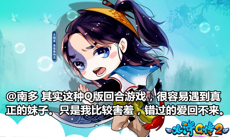 @南多 以前玩水浒Q传的时候,有一个妹子(不确定是不是人妖)才认识几天有一次突然叫我当她老公,把当时还是初中生的我吓尿了,直接技术性掉线,后来换号玩,就没有然后了。