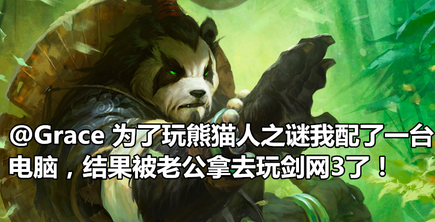 @Grace 12年国庆为了《熊猫人之谜》换了电脑,大概5000块的惠普吧,结果就玩了20级不玩,这造型真心接受不了。后来这电脑被我老公拿去玩剑3了!