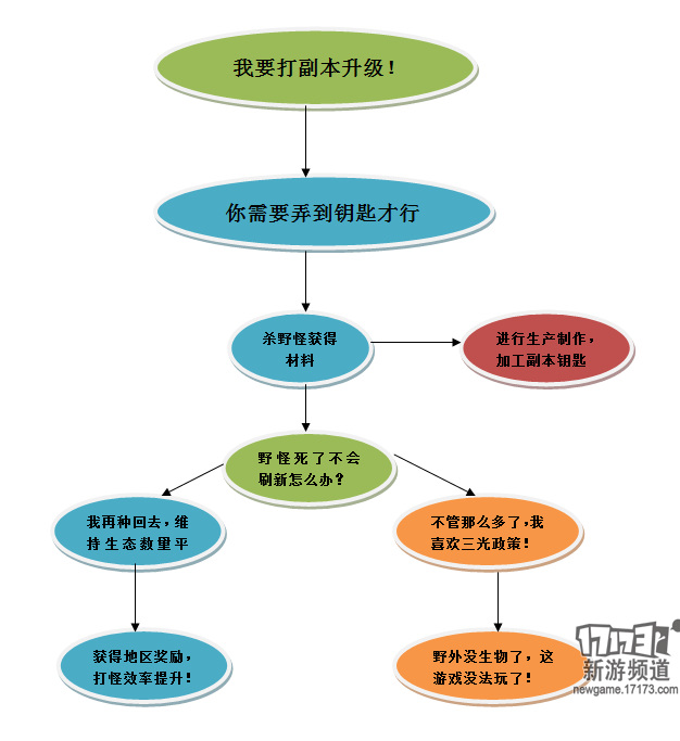 《沃土》在宣传上一直提到“生态”系统,而且将会关涉到游戏里的各个环节,我这里就简单为大家绘制了一份《沃土》的玩法关系示意图,看完之后就应该能够明白大概: