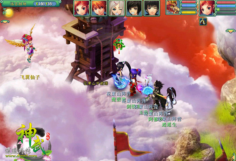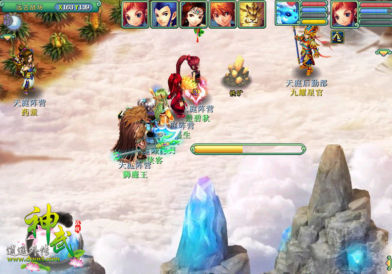 《神武》虽然是老游戏,但在玩法上还是算得上新意颇多。在“大闹天宫”PK活动中,玩家将被分为如DOTA中的近卫、天灾阵营一般,分别是花果山阵营和天宫阵营,顺利攻破对方基地算胜出。在活动中你会被随机分配到其中的一个阵营。