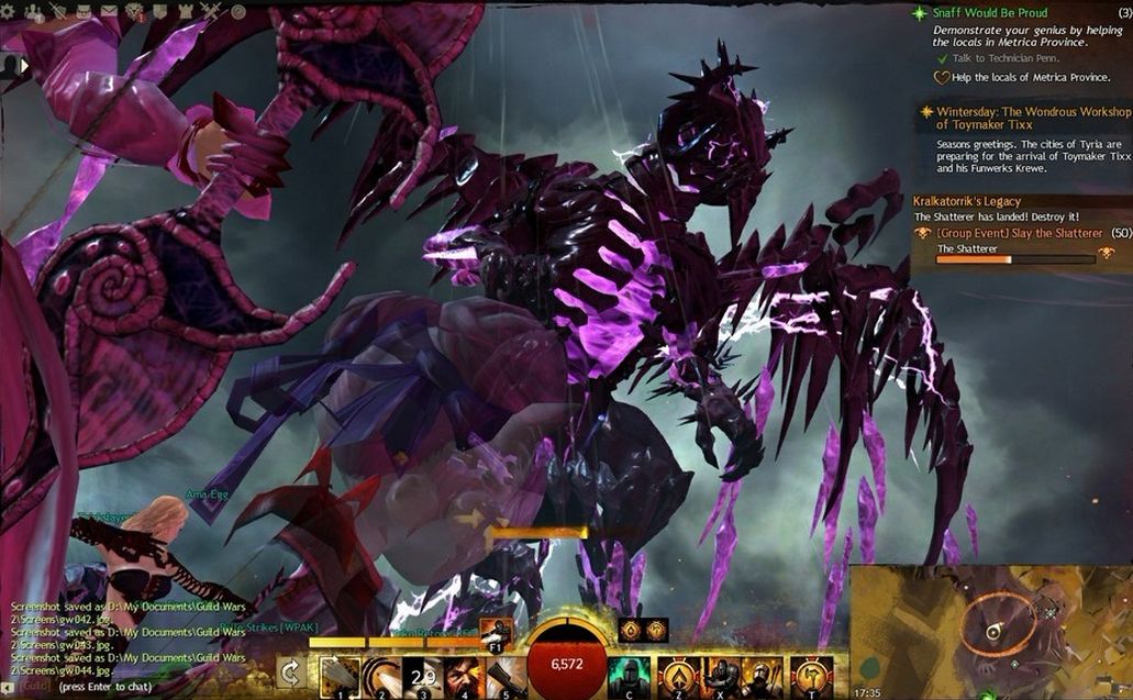 《激战2》的世界BOSS经常被老玩家讽刺为划水也能躺赢的送装备机器,在曾经的版本里,暗影巨兽和水晶龙都是最好的代表。你只要换上远程武器,把1号技能设置为自动释放,然后就可以安心蹲蹲马桶,大概3分钟后回来,装备和经验就轻松到手了。