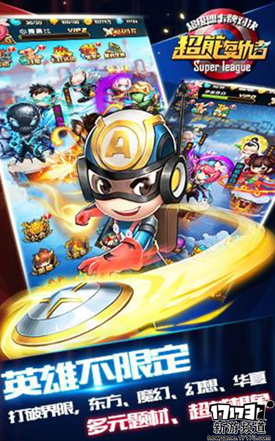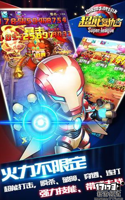 《超能复仇者》是一款打破题材时空界限、离散开放式的超级盟卡牌对决手游,”超级盟“即代表游戏不止一个世界观、阵营、联盟,玩家面对的不止一个次元的对手,华夏、幻想、魔幻、超能还有日漫,更多未知的题材在等待玩家探索,狼人、牛魔王、绿巨人、钢铁人、孙大圣、武圣关羽、黑岩射手、巫妖王、真宫寺樱、海贼王还有蝙蝠男、刺客阿萨辛等等总有合适你的英雄在等待。超多玩法、卡牌搜集、大陆征战、角色养成、装备打造、宝物合成和世界boss、竞技场pk、跨服联赛等等,在这里,体验快节奏、扫关卡、炫特效、爽到底的卡牌激斗。