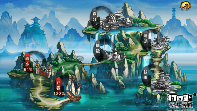 游戏在玩法上依旧采用了传统的副本闯关模式,虽然只是线性化的副本展开,但是以24节气名作为副本名称却是让游戏带上了一丝传统韵味。而游戏中的进阶副本玩法,各种BOSS挑战以及素材副本都会给玩家不一样的挑战难度和游戏乐趣,游戏中多达10个的阵容预设,能够让玩家自由的配合自己需要上场的队伍,根据不同的副本来搭配不同的阵容能够让你的游戏更加的轻松愉快。游戏中甚至还加入了类似大富翁式的走格子拿奖玩法,在一个太极图上以投骰子的方式决定前进步数,是奖励还是战斗全凭“天命”。