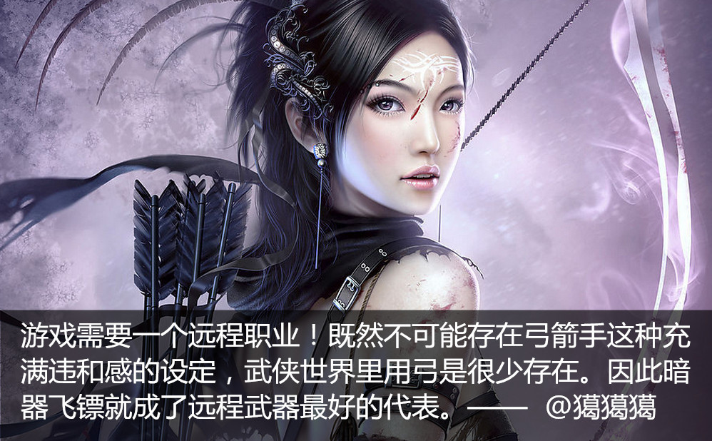 @獦獦獦 为什么要唐门?我觉得原因很简单:游戏需要一个远程职业!既然不可能存在弓箭手这种充满违和感的设定,武侠世界里用弓是很少存在。因此暗器飞镖就成了远程武器最好的代表。