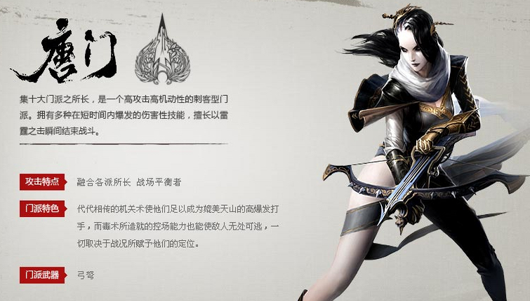 唐门这个职业,根据考证来源于“四川唐大嫂”,擅长各种毒药暗器。在今天几乎所有的武侠网游中,都出现了唐门,不管与游戏的背景世界观的贴合程度,仿佛一定要有一个唐门才算完整。这究竟合不合适呢?下面就听听编辑们是怎么看的吧!