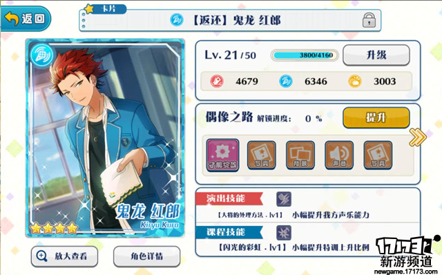 游戏中的角色能力都各不相同,表演系、歌唱系、舞蹈系等等每个人物的属性偏向也各不相同。在角色培养方面简单的消耗素材来提升角色经验,并且提升等级之后还将解锁全新的角色技能属性、服装等等,当然每个角色的能力都各不相同,并且游戏三局两胜的战斗机制也就决定着玩家不可能单纯的只培养一名角色,只有全面发展才能够培养出一支偶像天团出来。